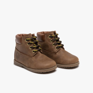 Lace up shoes with waterproof leather and Lapin on the top of the shoes. The rubber sole is mounted onto the form. The interior of the item has a natural calf lining and leather anatomical support. Available sizes from 18-29.